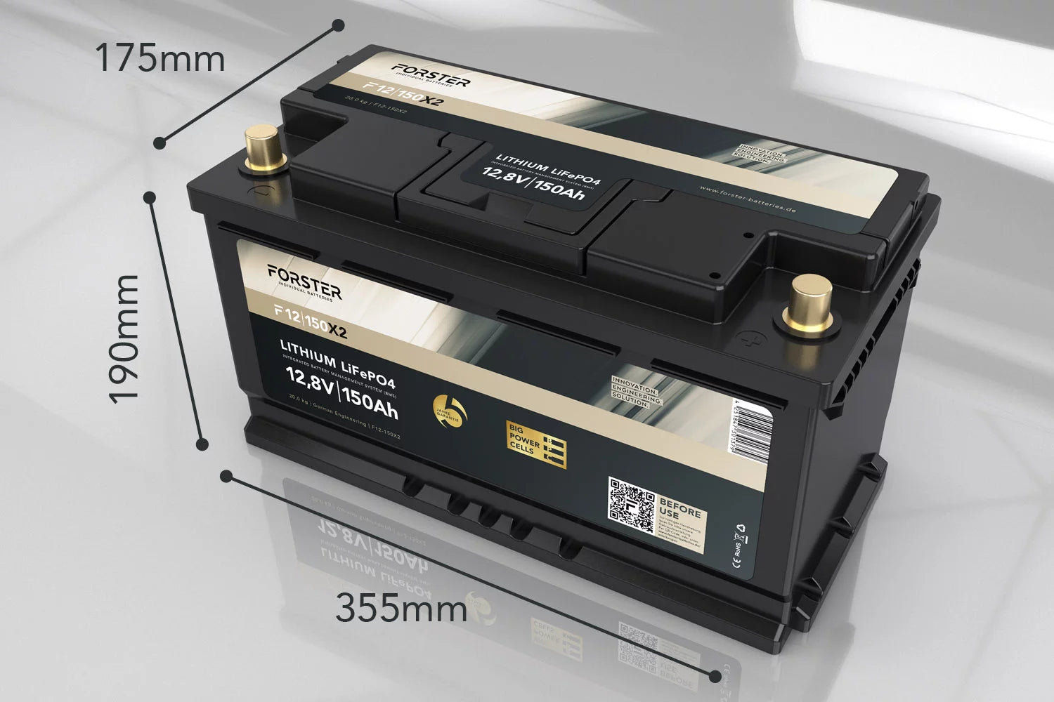 Forster 12,8V Lithium 150Ah LiFePO4 Premium Batterie | 200A-BMS-2.0 | Ducato Ford PSA | 1920Wh | IP67