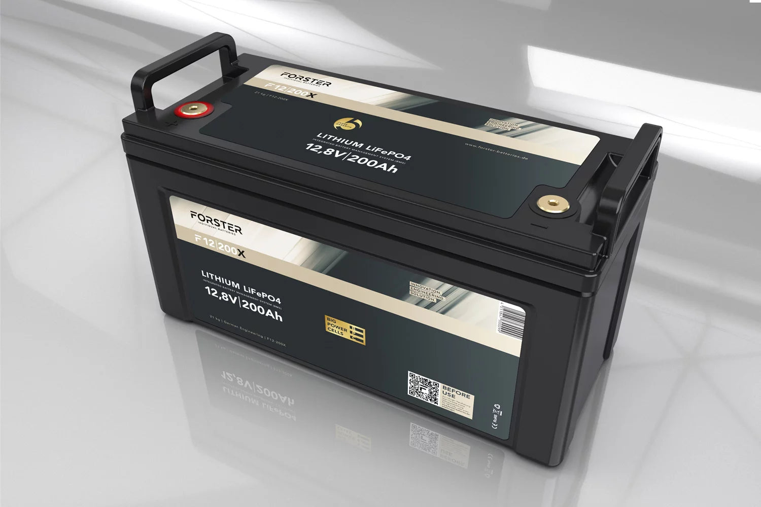 Forster 12,8V Lithium 200Ah LiFePO4 Premium Batterie | 200A-BMS-2.0 | 2560Wh | IP67