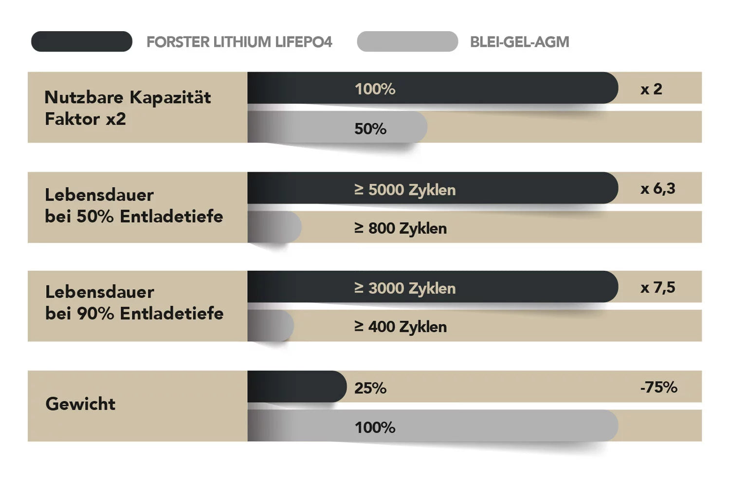 | Zyklen / Lebensdauer bei 50% DoD | >8000 |